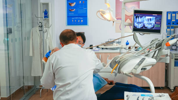Dental extraction of a tooth by professional dentist.